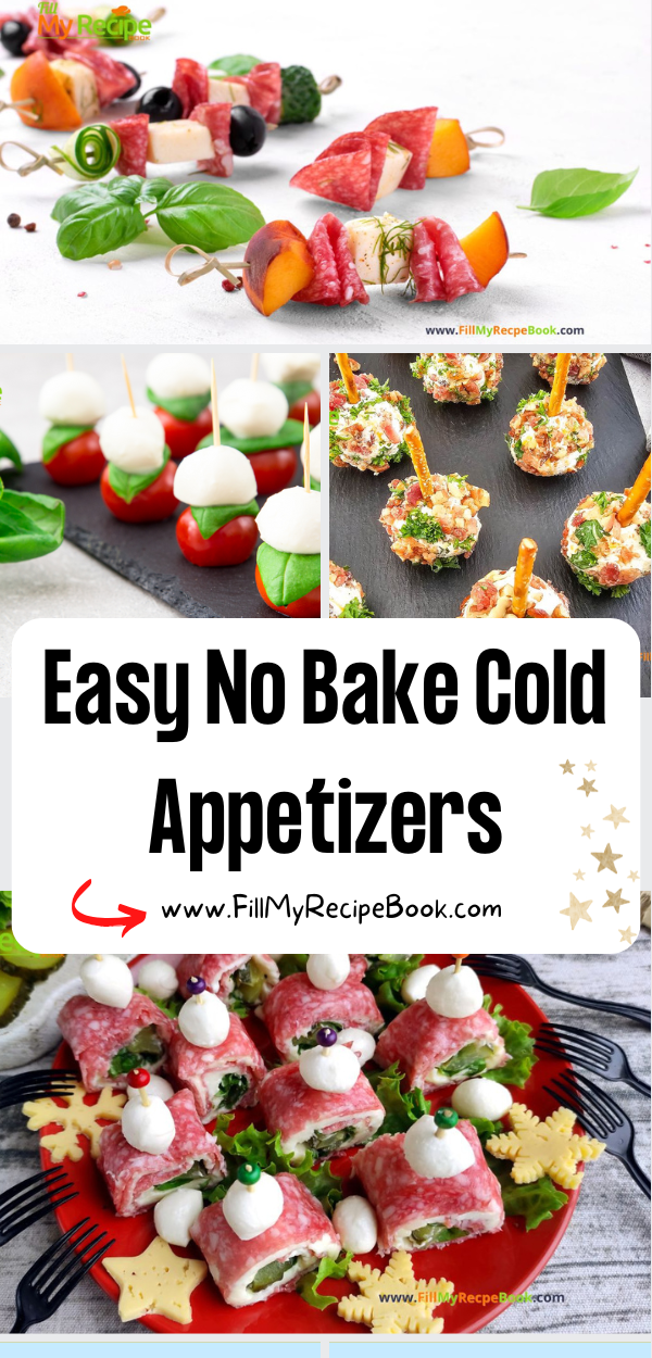 Easy No Bake Cold Appetizers Recipes ideas. Healthy no bake snacks to make ahead, fresh fruit and party food on a stick or toothpick.