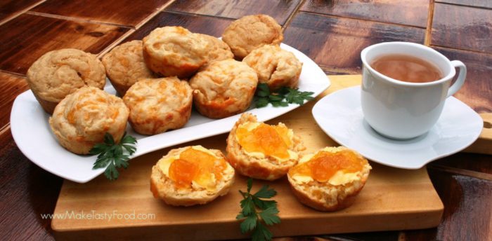 Tasty homemade Sugar Free Cheese Scones Recipe idea. Olive oil or butter used, an easy savory oven bake in a muffin pan with filling ideas.