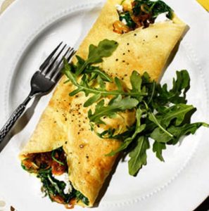 caramelized onion arugula omelet